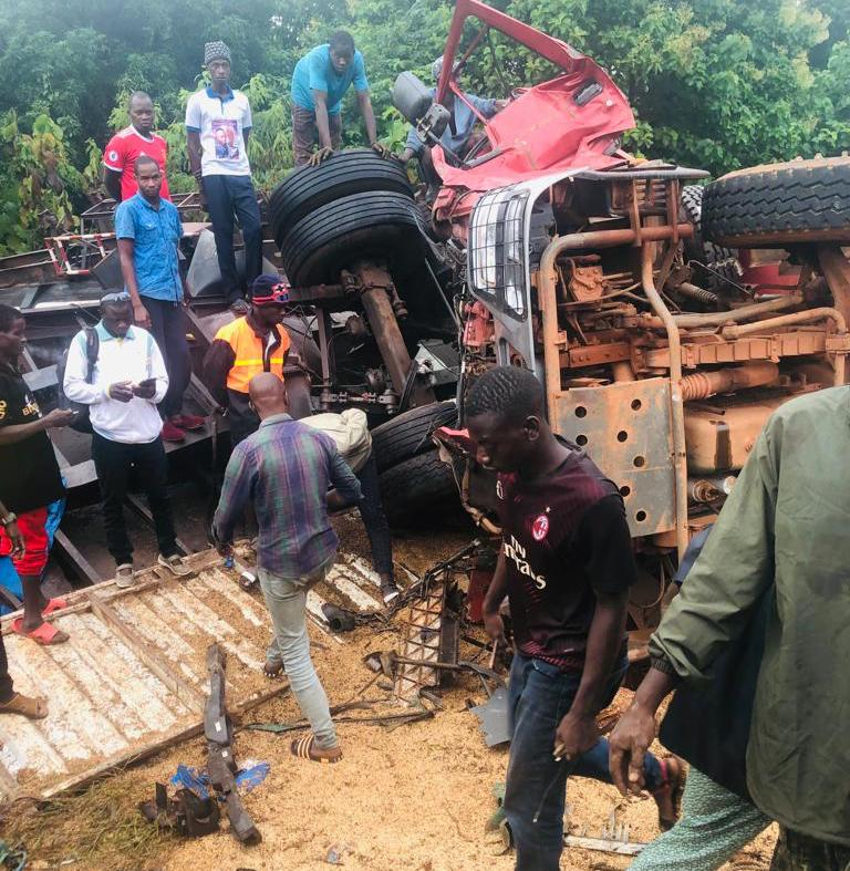 Le mastodonte accidenté aurait glissé sur du blé laissé par une remorque en partance pour la République du MALI. Le camion des deux victimes guinéennes (Madjid Sow et Bachir Baldé) est un sorti d’usine Chinoise.