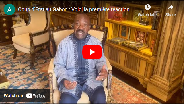 Un peu plutôt, le président déchu Ali Bongo est apparu dans une vidéo. Blotti dans un canapé et tremblant, il a lancé un message en anglais dans lequel il demande à ses amis de faire du bruit. Il a confirmé être placé en résidence surveillée.