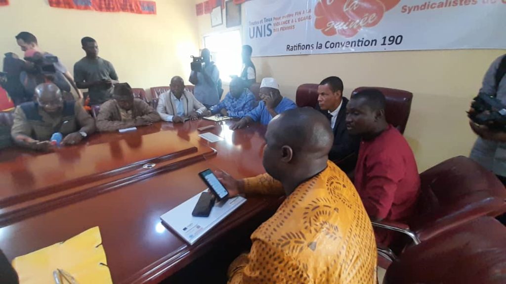 Après la lecture de leur déclaration conjointe à la bourse du travail cet après-midi, une délégation syndicale a été dépêchée au Ministère du Travail et la Fonction Publique pour déposer l’avis de grève.