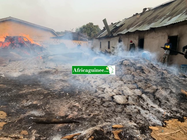 Selon nos informations, c’est à 02h du matin que le feu s’est déclaré dans cet entrepôt l’un des plus grands de Nzérékoré. Interrogé, Delamou Pascal, membre du bureau régional de la filière bois de N’zérékoré et membre du bureau consulaire de la chambre nationale d’agriculture, propriétaire des lieux est revenu sur les circonstances dans lesquelles il a été alerté.