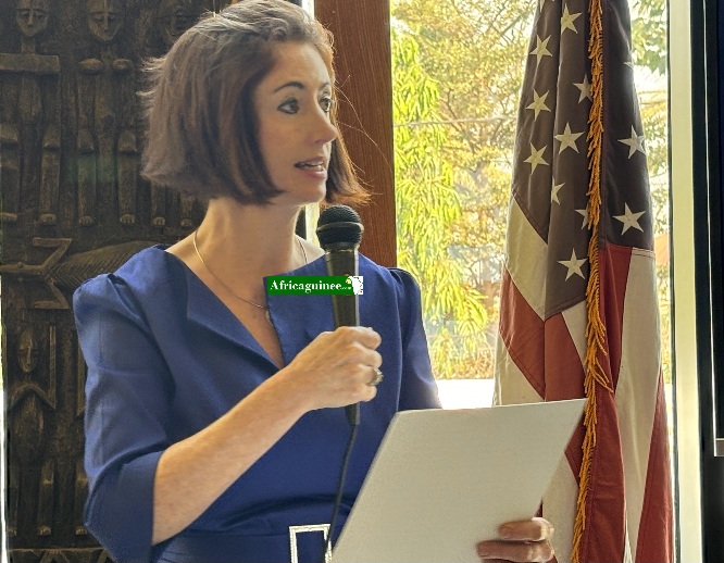 CONAKRY-« La Guinée se trouve à un moment crucial de sa transition démocratique ». Déclaration de Anne Dudte, première conseillère de l’ambassade des États-Unis en Guinée. Ce lundi 10 janvier 2025, en marge d’une cérémonie organisée par représentation diplomatique américaine, à l’occasion de la prestation de serment de Donald Trump, la diplomate a réaffirmé l’engagement des États-Unis à soutenir la Guinée sur son chemin vers la démocratie. Elle souligne toutefois, que la route qui est devant demande une dévotion collective à la transparence, à l’inclusion et au dialogue.
